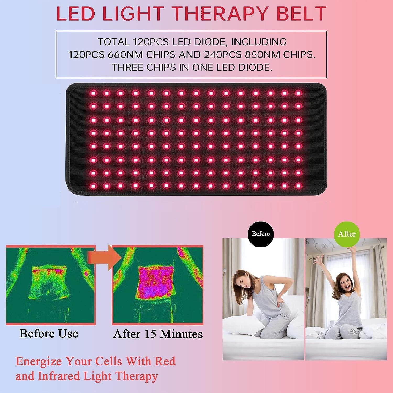 A gentle heating function adds consistent warmth to improve blood flow, loosen tight muscles, and support everyday mobility?perfect for long workdays, workouts, or monthly discomfort. Equipped with 120 high-density LED beads, this belt delivers complete red-light coverage for faster, more effective relief.